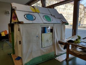 Selbstgebautes Haus im Pavillon des Hortes Südendschule