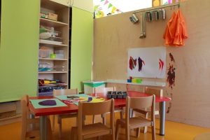 - Gruppenraum mit verschiedenen Bereichen (Konstruieren und Bauen, Bewegung, Entspannung und Ruhe, Kreativwerden)